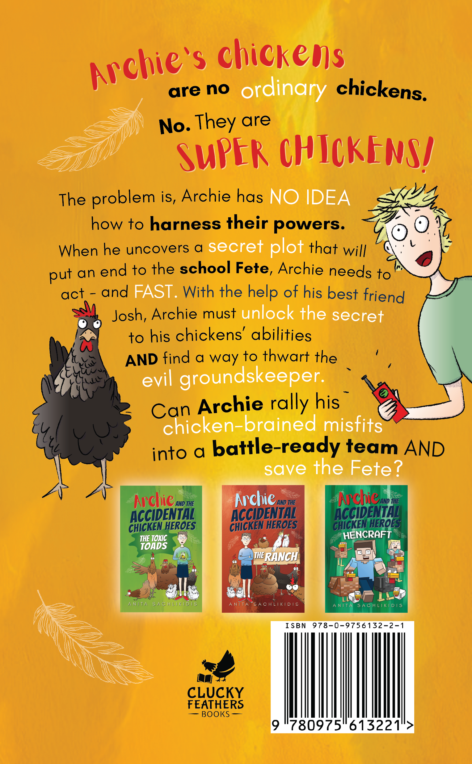 When he uncovers a secret plot that will put an end to the school Fete, Archie needs to act – and FAST. With the help of his best friend Josh, Archie must unlock the secret to his chickens’ abilities AND find a way to thwart the evil groundskeeper.